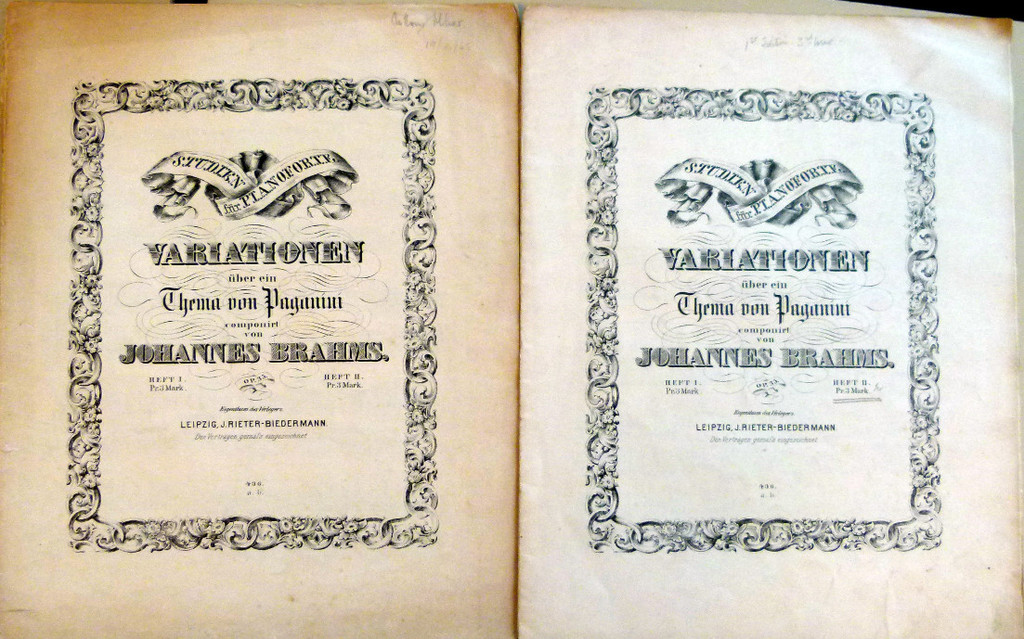 - Brahms, Johannes: Klaviersonate op. 1 Joseph Joachim gewidmet Leipzig: Breitkopf und Härtel Pl.-Nr. 8833 Erstdruck, 1854